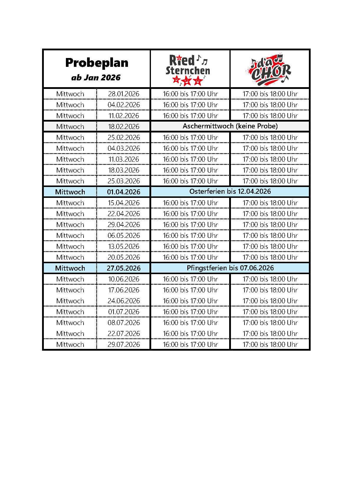 Hier sehen Sie den aktuelle Probeplan von allen unseren Chören.